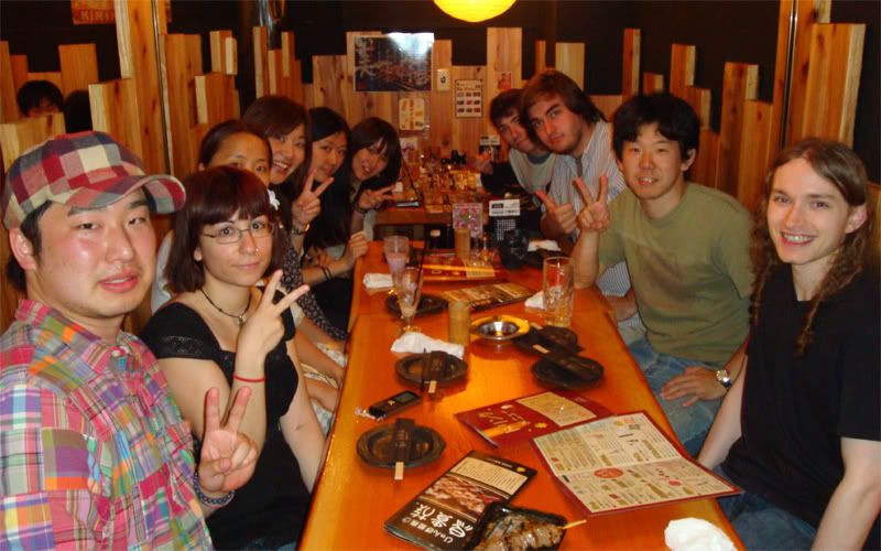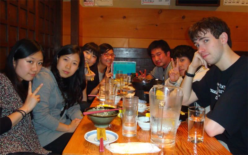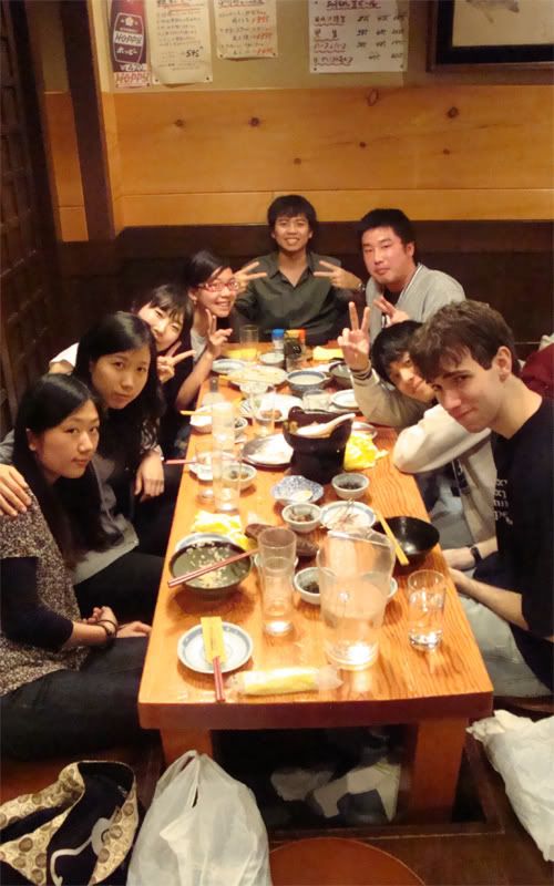 time. It was basically all the students from the JLSP program, a few of the older students in a similar program, and a bunch of the Japanese students who we've become friends with over the last several days. It was a blast, and everyone was getting tipsy left and right. You know you've had enough to drink when your Japanese starts coming out more naturally and a heck of a lot louder when