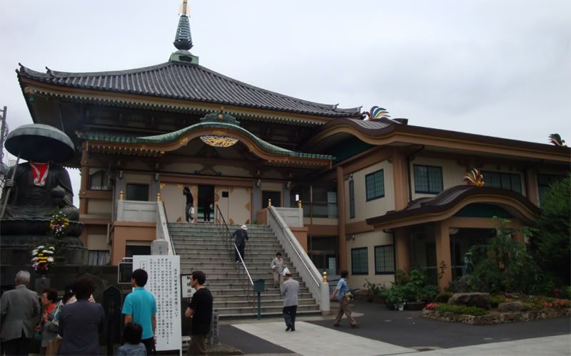 So we decided to go visit some other places that we haven't seen yet, so we came across these two places. On Saturday we had nothing better to do than to recover from the drinking we've done the night before. So, we took a late train to a little place called Sugamo (I think) where they had a Matsuri (festival) for one of the temples. It was a small festival with booths lining one of the roads selling food. It started to rain quite a bit so we didn't stay there very long. But, while we were there we at least got to try some really good food.