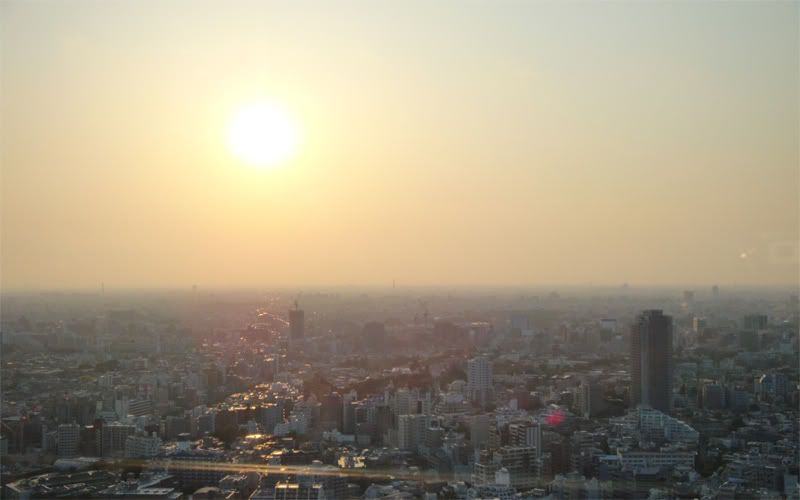 There wasn't much to see at first, but a few nice buildings, and a large hotel right outside the station. We walked around to what is called Ebisu Gardens and took the elevator ride up a 39-floor hotel to see what sorts of restaurants they had. While we were there, we were able to watch the sun dawn over Tokyo and take in some sights. After a bit we rode the elevator down and decided to head out