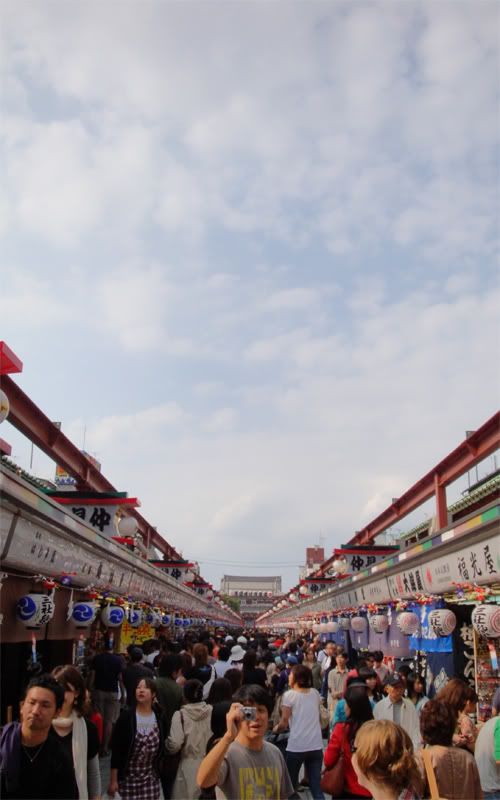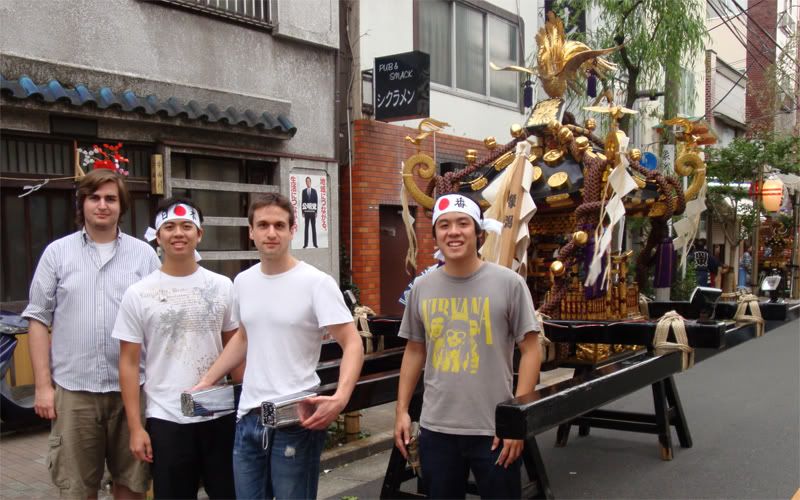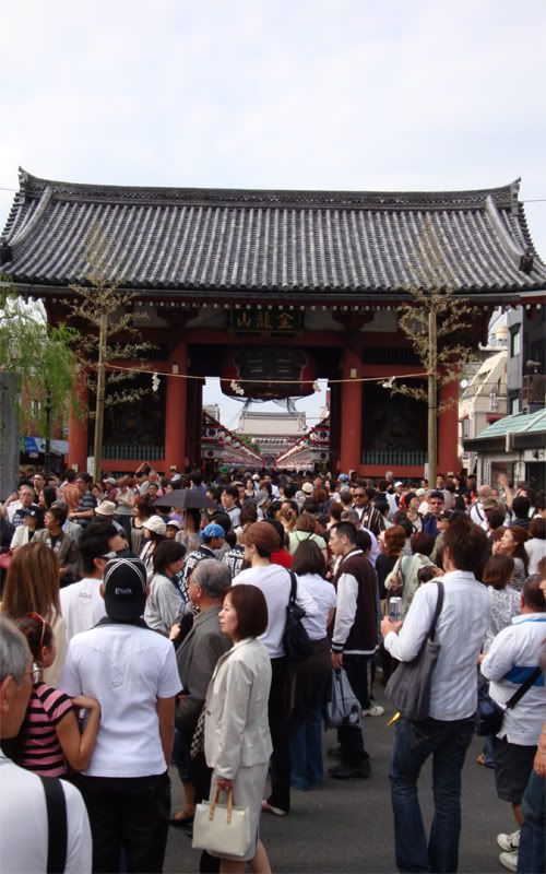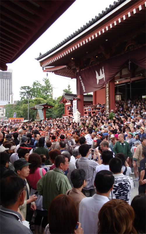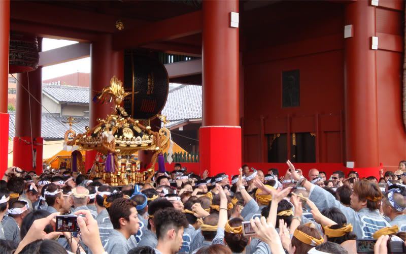 So today was pretty fun. I spent the entire day at Asakusa for the Sanja Matsuri. I have no idea what that translates to but it was sure a lot of fun. Getting there was a real pain though. Talk about having to rely on your Japanese, lol. I had to ask/talk to two separate people at the station so I could find my way, alongside my classmates. Sometimes they should just slow down their speech a bit so we