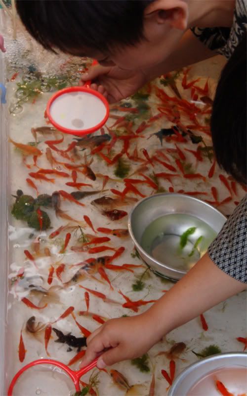 There were fishing games with the little paper net. I remember catching like 8 little fish in Ala Moana once so I paid the 300yen to try. I caught the two goldfish like nothing, so I decided to get the fatty on the side. Unfortunately the fatty was, well, heavy. So it broke the net and I was done. Later on I found a stand where